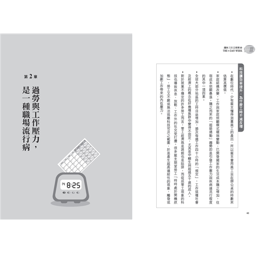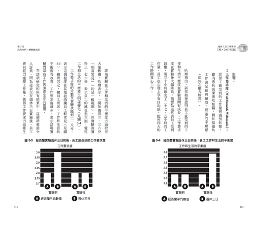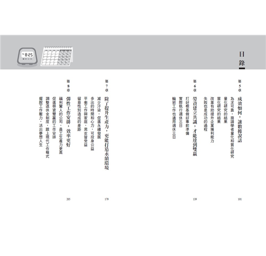我身為管理約兩百四十人的業主,對此大吃一驚。思考一番後,我明白了一點,雖然資方針對不同職位與部門制定工作量,但有些員工可能一天只有幾小時的生產力。根據我的推算,如果每位員工的生產力平均每天約二.五小時,雇主只要想辦法讓員工的生產力每天多四十分鐘,那麼週休三日與週休二日的生產力就沒有不同。如果我成功了,...