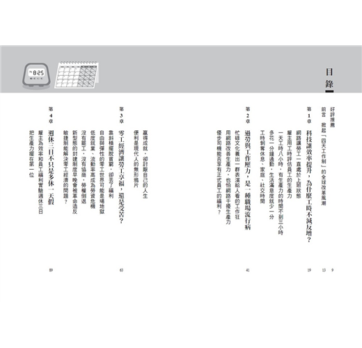 「週休三日靠的是效率,而效率背後的目的是為了更好的人生選擇。本書極具新穎的觀察與執行成果,值得讓我們為未來做好準備。」──江守智,知名精實管理顧問