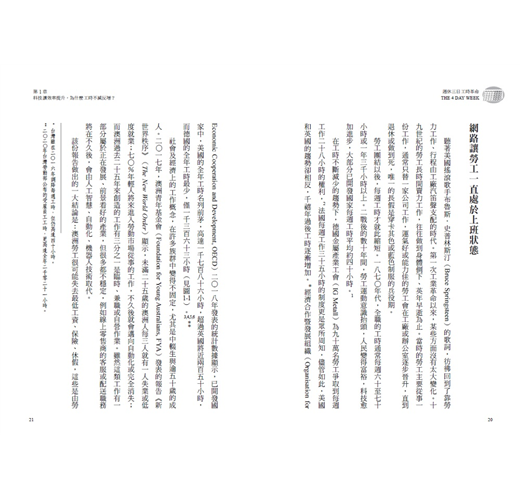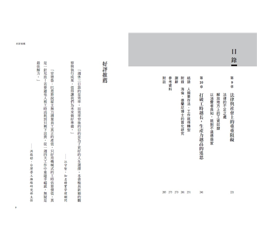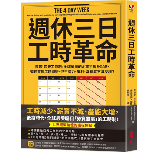 在此期盼企業主、立法機關、工會、氣候運動者與同工同酬倡導者共同體認到週休三日工時革命的價值,並努力把這套工時制度帶到二十一世紀。本書是實證與實踐週休三日的簡易指南。