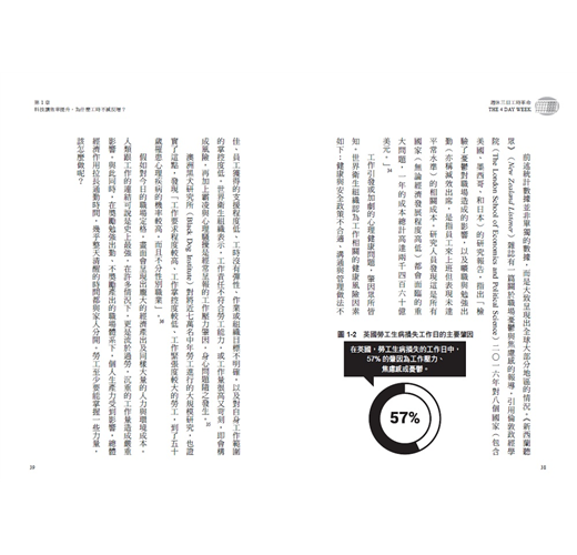 一篇新聞報導闡述的工時概念,掀起七十五國的討論話題,隨著數十家公司進行實驗並提出實證,愈發引人注目。與此同時,已有多國政府與立法機構開始認真討論週休三日的法案,也有多個組織採用,例如英國的工會聯盟(Trades Union Congress)、綠黨(Green Party)、工黨(Labour Party)等。在我撰寫本書之際,俄羅斯議會開始擬定草案,打算在全國逐步實行週休三日。