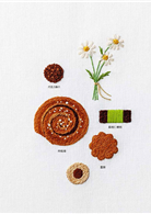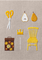 以庭院裡種的花草、日常生活周遭的物品、旅行途中獲得的靈感做出天然刺繡作品。