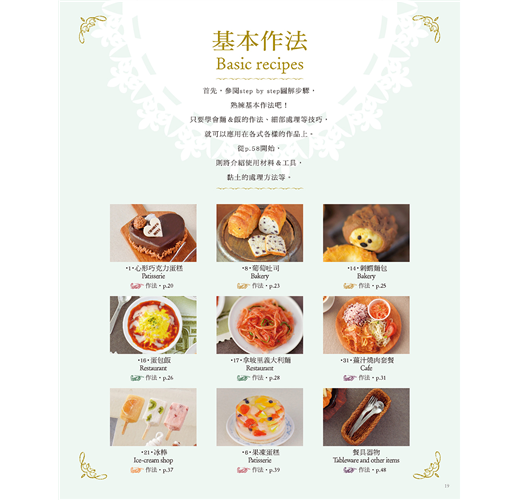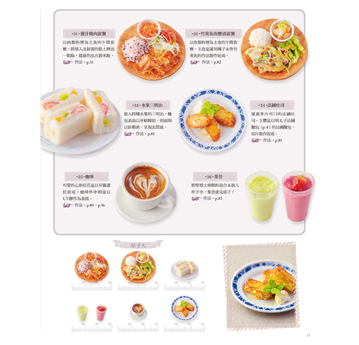 令人怦然心動的蛋糕、香味四溢的麵包、熱呼呼的西式餐點或冰冰甜甜的冰淇淋,各式各樣的熟食、時髦的咖啡廳午餐、懷舊的傳統點心、高級的和菓子……不管是美味的點心或料理,迷你袖珍食物全部都可以作得出來!