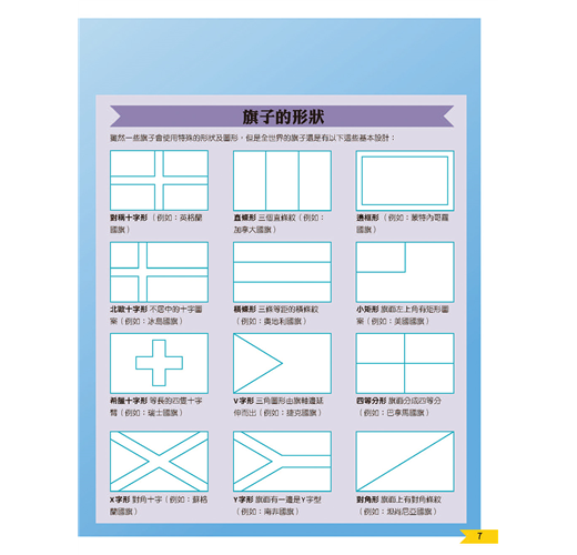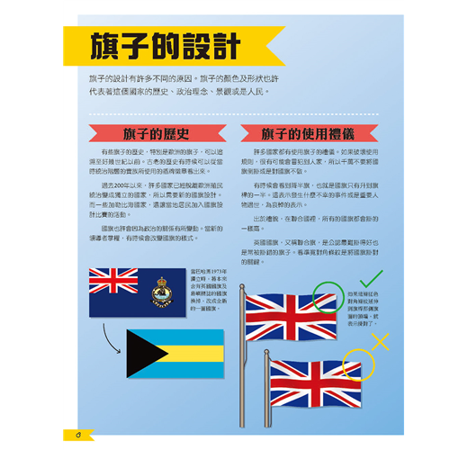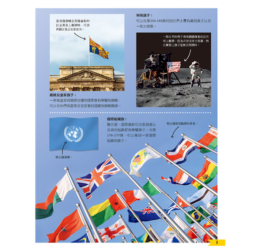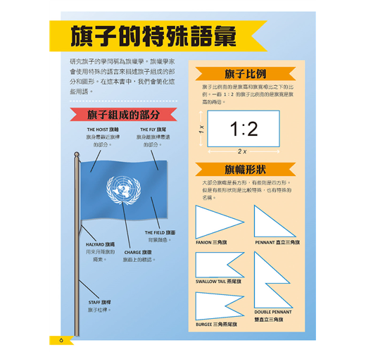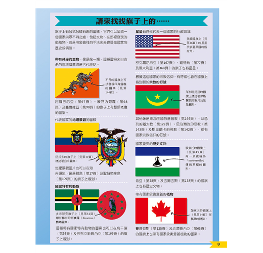 ◎以旗幟學、世界六大洲、特殊旗幟劃分主題,清楚明瞭。