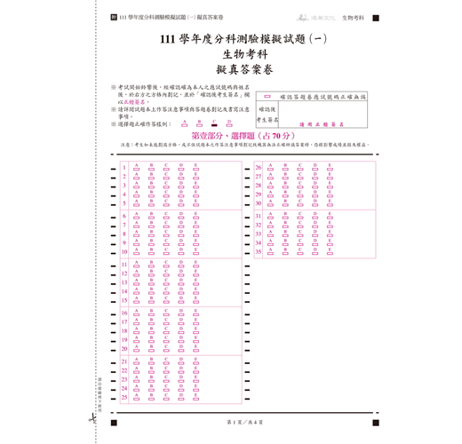111學年度分科測驗模擬試題(一)
