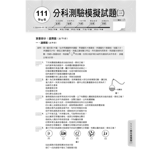 111學年度分科測驗模擬試題詳解(一)