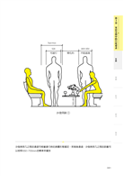餐飲空間列舉了矩形桌、圓桌在人數不同的情況下的相應尺寸。