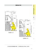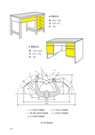 書桌針對人的左右手工作時的桌面作業域進行詳細的尺度細分。