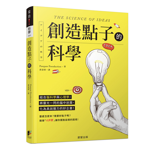 本書的目標,就是從腦科學和心理學的科學觀點出發,一一解析如何「創造」點子、將點子漂亮地「展現」,並充分「傳達」給對方,包括許多實用的心理技巧,讓你可以利用大腦的思考機制想出好點子,再因應當下需求影響他人。