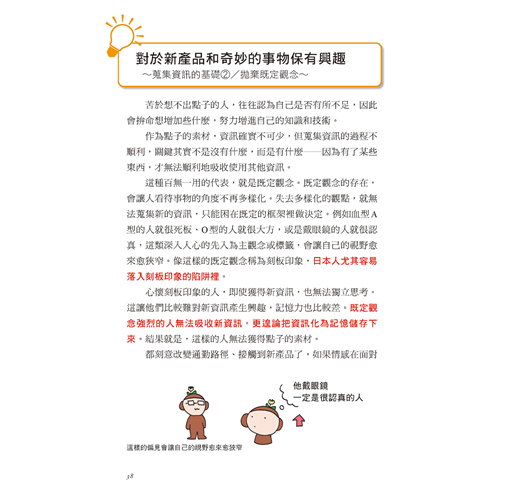 構成點子素材的資料,就藏在大腦裡。這些資料必須妥善保存,並事先整理好,以便隨時取出。提高自己的記憶力,是創造點子前重要的準備工作。
