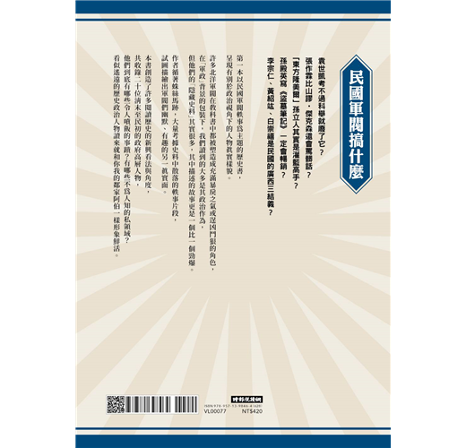 但在如此絕對的圖像中,要為他們做「改頭換面」的翻案文章,其實不難,相關史料極多,本書正是彙整多方資料而寫就的佳作之一。讀者可從書中親切活潑的文句,看到在卸下「軍閥」身分後,那一個個活生生的「人」。