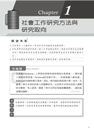 不必通勤跑補習班浪費時間,考用名師幫大家把歷屆試題按章節及重要度,有系統性的整理好了!「社會(工作)研究方法」是社工系學生普遍覺得最難準備的一門考科,本書編者細心地於申論題逐題提示解題方向,同時亦延伸提醒考生應注意的相關考點,建立考生準備相關題型的完整性;在測驗題部分,逐題解析,可以讓考生辨別正確答案與錯誤答案的細微差距,進而同步建立清晰正確的選題觀念與技巧,在考場插上勝利之旗。