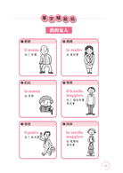 內容都是日常生活中最基本的單字和句型,最重要的是都附有中文拼音輔助,簡單易學,有助你掌握發音技巧,加強聽說能力,學習純正道地的義大利語。是你自學義大利語的好幫手。