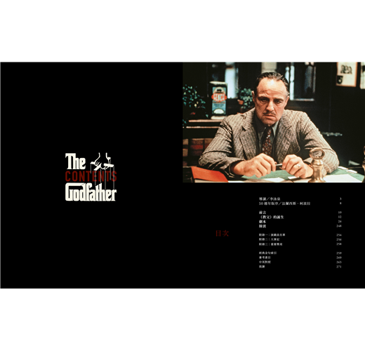 適逢《教父》首映50週年,《教父寶典》一書獲得充分授權,評註詳實且圖文並茂,收錄導演、製片、演員、劇組人員在籌拍階段的傾軋角力、拍片期間的幕後趣事,也搭配新聞報導與影評人的說法,呈現這部經典電影全方位的觀點。