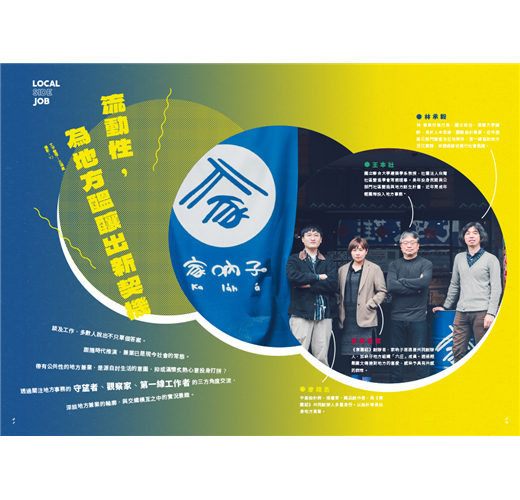接著,藉由「兼業」得以成立的「案主」和「兼業者」雙方角色,連線訪談苗栗苑裡「掀海風」、彰化溪州「我愛溪洲」、屏東恆春「火箭人實驗室」等需靈活運用兼業者的在地團體,了解深耕地方的工作者是如何調配人力和完成各式專案;同時,也請長期推動地方事務與文化的兼業者,談談如何在正職工作之餘,運用自己的所學和專業技能,透過實際參與而加入地方的苦甜和收獲。