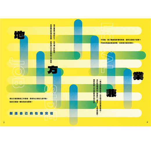 斜槓、創業、自由工作者,面對愈來愈多變的職業風氣,有許多人雖然想嘗試,卻礙於現實考量無法直接轉換工作模式,或全然改變居住地。因此一種在城鄉間移動、先在地方找到喜好單位,並以自身專業開始投入發展的「兼業」,正悄悄發酵,慢慢打破城市與鄉村對工作的既定定義,開啟改變工作和擾動地方的可能。