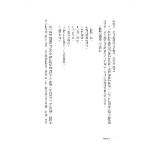 ※變動思維能發展出八種變動超能力,幫助你在變局中維持成功