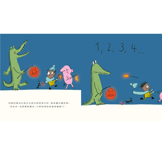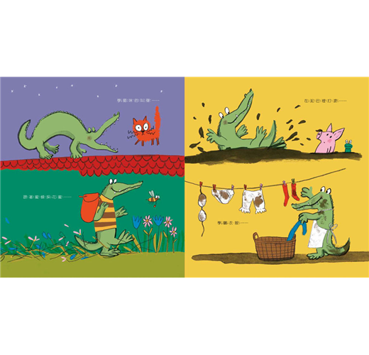 ★圖畫中藏著小細節,例如用雨傘保護自己免受鱷魚眼淚的蚯蚓,或在碼頭場景中藏於角落一一冒出的小魚,都在主要情節之外提供了趣味小發現。
