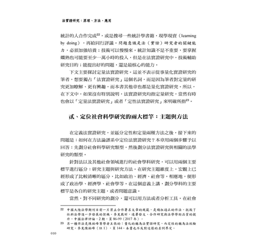 上市兩年,承蒙讀者厚愛,以新臺幣下架了第一版的數百本。過去兩年間,法實證研究方法持續在法學界中開枝散葉。筆者有幸在連續兩年的科技部法律學門訓練營中分享法實證研究的心得,看到台下上百個興奮、期待又有點困惑的臉龐,覺得量化實證研究雖然進入門檻不低,但其價值似乎已經廣受肯定。2020年、2021年,受到疫情影響,無法舉辦國際研討會;但我在中研院法律所舉辦的法實證研究工作坊,只有國內學者報告與評論,就可以排滿兩天還欲罷不能,連我都要讓賢給年輕人報告!黃詩淳老師、蘇凱平老師等等優秀同儕與後起之秀皆在學校開設法實證研究課程,各大學報刊登了各種部門法領域的實證研究(註1)。法實證研究,看起來真是欣欣向榮!