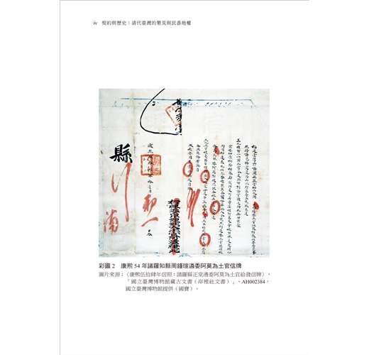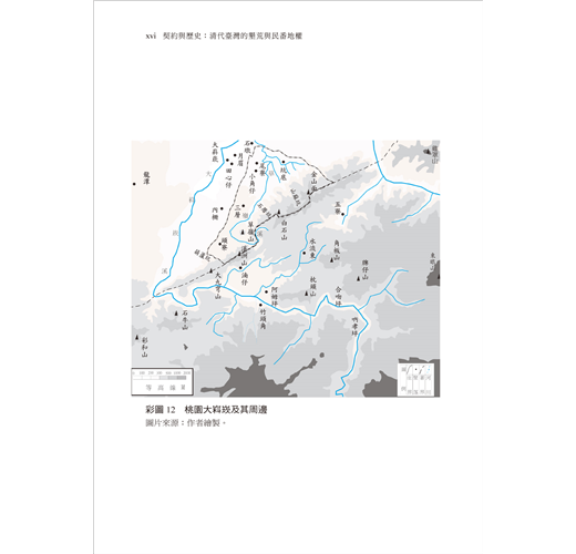 這本書選錄1991年筆者進臺大碩士班以來近30年間發表的8篇論文(參見附錄二),主題均環繞在清代臺灣的農墾、地權和契約。最晚發表的一篇是第八章〈從番屯到隘墾〉,其實也是最早寫成的。這篇文章原本是1996年完成的碩士論文〈日治時期臺灣林野整理事業之研究:以桃園大溪地區為中心〉中的一章,當時因指導教授吳密察的推薦而得以獲邀在淡江大學歷史系主辦的「臺灣開發史學術研討會」上發表,並收入會後出版的論文集中。但當我著手要將相關論文改寫成專書,重讀這篇早年的文章時,唯一還算好的就只有字裡行間散發著的年輕熱情,至於其史料解讀、章節架構、論證分析等,雖還不至於不忍卒睹,卻難免臉紅心悸。相信很多人都有類似的經驗,原本只想動手微調,最後變成徹底打掉重建,完全是一篇新的文章。整本專書的修改過程心情類皆如此複雜,既是困窘卻又感覺良好,最重要的不是自己在學術能力上的精進成長,而是清楚感受到了30年來臺灣史研究的深化、累積和擴展。因此,呈現在讀者眼前的這本專書雖可說是「舊作」,卻都做了一定程度的修改調整,目的是希望這不會只是本論文集,而是有著內在架構、有機連結,可以反映學術累積並展望未來的專書。