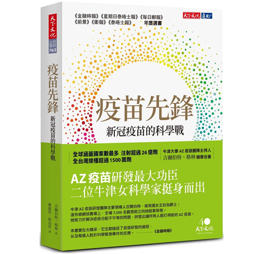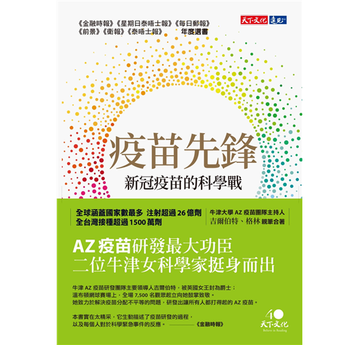 天下文化順應COVID-19疫情出版一系列報導疫苗相關書籍,像是AZ與BNT疫苗在面對疫情危機時刻展現創新爆發力而研發上市的過程,令人動容,近日台灣本土疫情趨於平緩,正是回頭關心台灣疫苗產業發展的好時機。