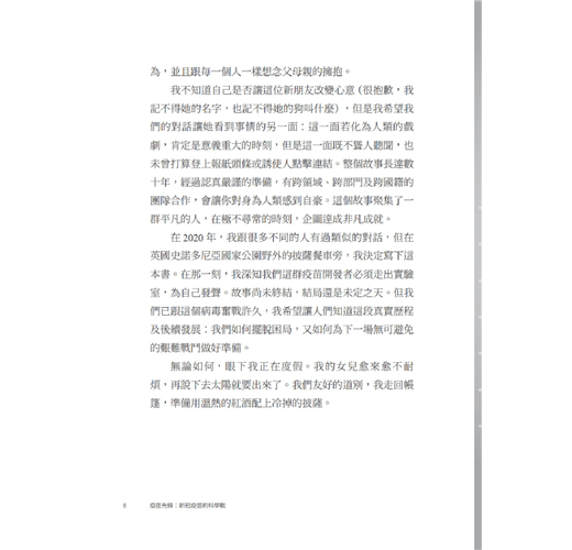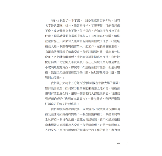 本書實在太精采,即使疫情結束後仍然很吸引人,因為它生動描述了疫苗研發的過程,以及每個人對於科學緊急事件的反應。