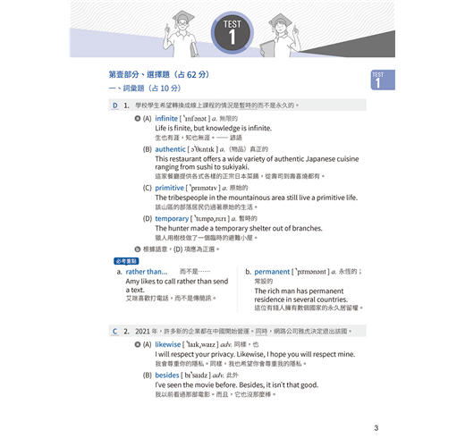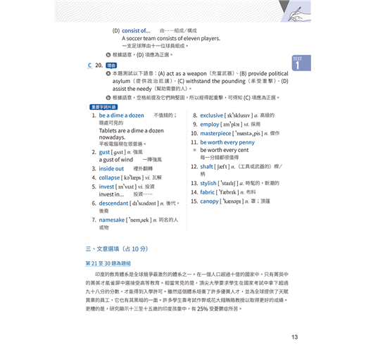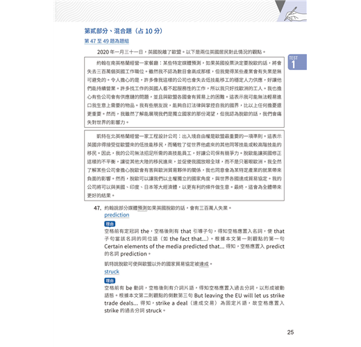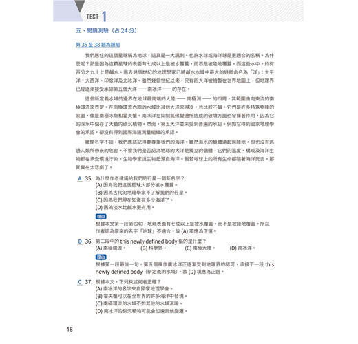 提供絕佳翻譯與精闢解析,理解文章脈絡、掌握作答關鍵、培養快速解題實力。羅列重要