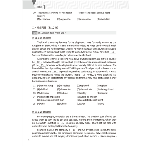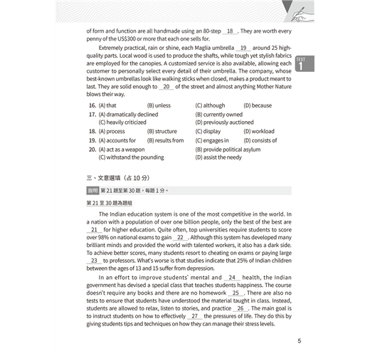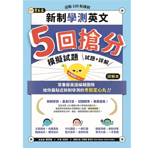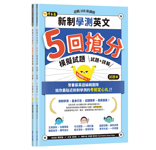 為此,本公司特地推出《迎戰108新課綱:新制學測英文5回搶分模擬試題》,本書共 5 回完整學測模擬試題,題型...
