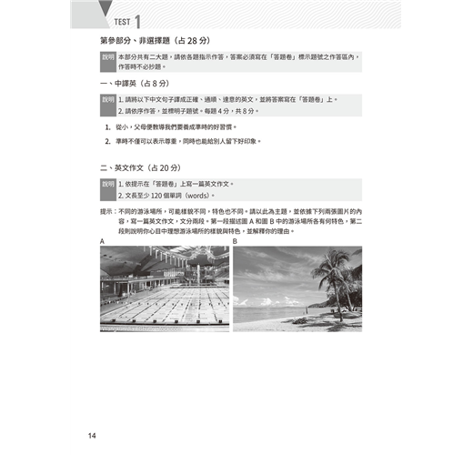 題型配合108課綱設計,以培養核心素養寫作能力為主軸;包含圖表寫作、看連環圖寫作、信函寫作、引導式寫作、主題式寫作……等類型。