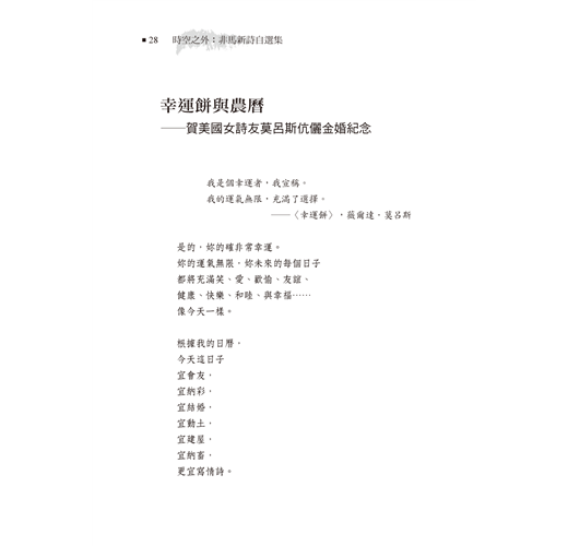 資深詩人非馬,集結自2013年起至今共九年的詩作精華,出版第五卷自選集,搭配油畫作品讀詩,詩中有畫、畫中有詩。