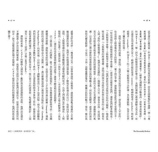 ►引人入勝、影響深遠。安姆瑞發揮偵探、文化評論、歷史研究、科學與傳記作家的本領,調查發明與推廣MBTI的兩位女性……安姆瑞在前言中說這本書是為人格類型的懷疑者、信徒和不疑也不信的人而寫,此言不虛。——《華爾街日報》