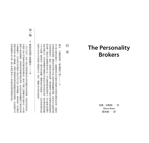 MBTI測驗廣為流傳後,甚至成為每年獲利高達二十億美元的產業。然而,此領域專家們至今仍無法證明,這項測驗結果是否可靠………。本書作者安姆瑞以原創報導及從未公開過的文件為基礎,檢視這樣擁有文化代表性的人格類型,引導讀者省思「自我」的定義。很多人堅信人格類型能夠理解我們是誰:我們為何選擇現在的工作、為什麼愛我們愛的那些人、為什麼會做出明顯矛盾的各種行為。本書試圖找出這種堅定不移的信念從何而來,探討兩位發明者又是如何為人格類型成為大眾文化現象鋪路,以及這現象背後蘊含的深意。(更詳盡的內容介紹,請參見網頁中目錄的各章引文。)