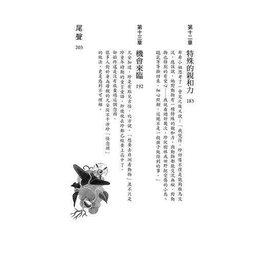 從這本書,可以瞭解珍古德的童年時光,看到許多點滴影響她的軌跡。長大之後,珍古德博士投入黑猩猩的研究。她的研究,重新定義了我們和動物之間的關係。中年以後,無法坐視黑猩猩棲息地被破壞、盜獵等威脅而導致滅絕危機的現實,她從科學家的身份,毅然轉換成行動派,到世界各地演講,讓更多人知道真相。「唯有瞭解,才會關心。唯有關心,才會行動。唯有行動,生命才會有希望。」過去30年來,博士全力推動的根與芽計畫,更是影響了全世界許多年輕人。
