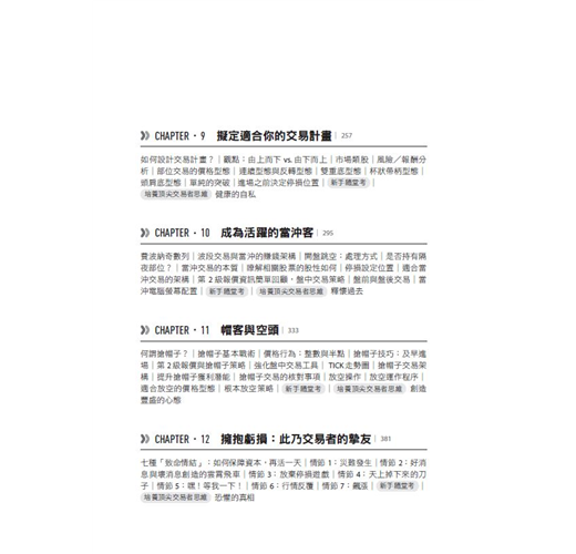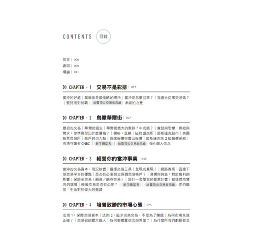 而本書出版的目的,就是讓投資人可以從最基礎的開戶選擇以及下單平台著手,並且在結合正確的交易觀念後,學習職業當沖玩家的交易思維,以建立一套能夠精準獲利的當沖交易模式。