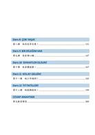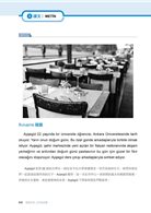 1. 課文:針對該課主題,精心編寫短文及會話,除了可提升土耳其語的閱讀能力之外,同時還能熟習土耳其人的日常口語表達。版面採土語、中文左右兩欄式設計,方便逐句對照翻譯,也可以先將右方中文遮起來,挑戰自己對土語原文的理解力。