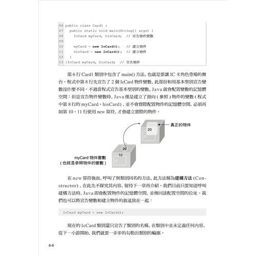 書中以圖文搭配豐富的範例進行解說, 處處可見「正確」、「錯誤」的實作案例對照, 清楚展示各種語言元素的變化用法與差異, 讓讀者從「做」中體會物件導向程式的精髓, 非常適合作為初學入門、紮穩基礎的第一本書。