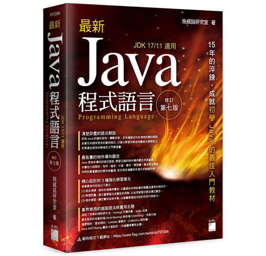 Java 語言一直是企業界最愛用的語言, 因此我們期許讀者不僅撰寫出可編譯、可執行的 Java 程式, 更重要的是要瞭解良好的程式設計方法, 以及軟體設計的邏輯思維, 才能快速融入開發團隊, 成為符合業界需求的程式設計師。