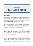 深入介紹描寫文、敘述文、說明文、論說文的特性,分析不同文體適合的搭配結構。從擬定大綱,逐步協助讀者寫出清楚的開場白、全文主題句,運用小技巧快速組織出文章主體,俐落收尾。