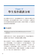 收錄9類連美國大學生都容易犯的錯誤、5項台灣學生獨有的寫作盲點,透過大量例句訂正,逐一除錯,指引讀者精準使用代名詞、避免懸盪修飾語等,並訓練以英文思考,內容表達更正確到位。