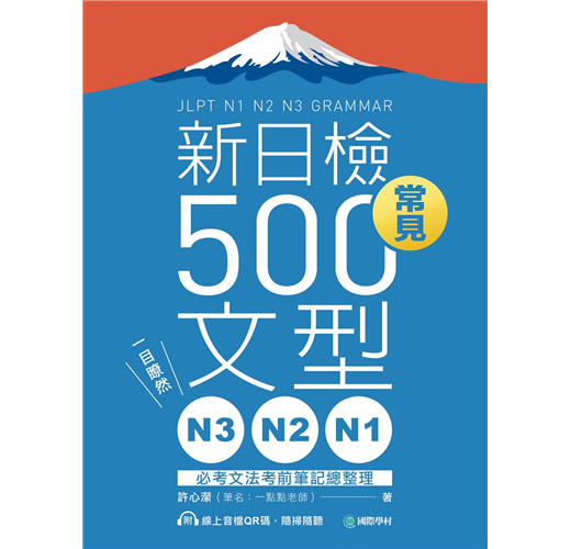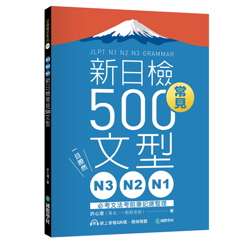 「新日檢常見500文型」收錄了日檢N3到N1最常見的500個文法,適合考前集中火力記憶,也可以用來補充自己的文法知識,高效率的吸收到日語檢定的必要能力!