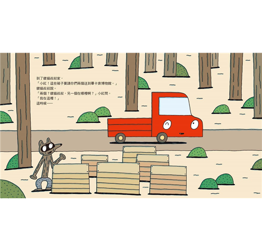 宮西達也的故事和圖畫常常讓人在熟悉中驚喜,小紅和小粉紅歷經千難萬難送到的貨櫃,打開來卻是支離破碎的分解體,小粉紅和小紅雖然已經盡力了,正內疚沒有圓滿達成任務而傷腦筋;故事最後,畫面上出現了恐龍的骨骼模型,原來他們的任務是將這些模型的支架送到博物館,館內的工作人員組裝後,才能順利呈現原貌給來賓觀賞。所以,這一趟旅行,小紅和小粉紅順利圓滿達成任務,小朋友你們是小紅還是小粉紅呢?