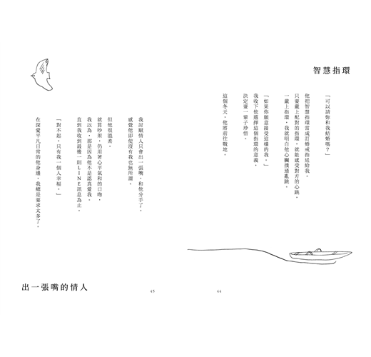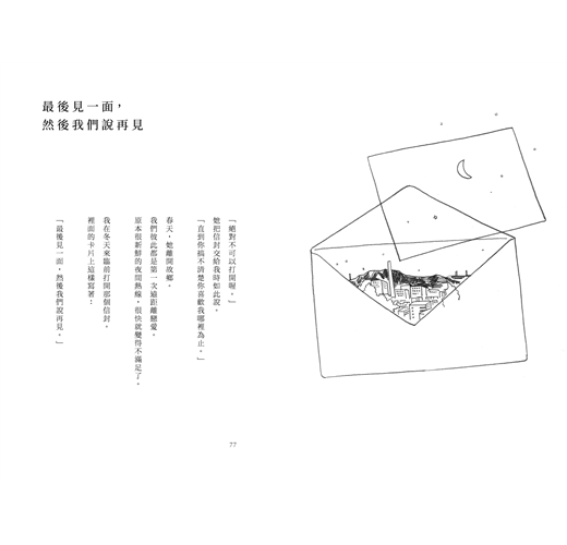 除此之外,本書的可看之處不只是一百四十日文字的故事,趁著出版之際全新創作的「連續故事」是個為了讓我加以擴展一百四十日文字故事世界的全新嘗試。每個故事都在一百四十日文字中結束,但只要連續閱讀,又可以讀出一個更大的「故事」。另外,在本書後半也收錄了中篇、短篇故事以及散文。