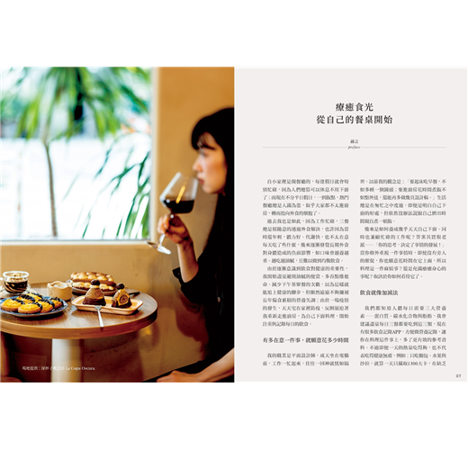 我特別注重氛圍感!會在精心烹調料理後,選配家中相宜的餐具,讓每天的餐桌都呈現不同的風景。美食具有良好的療癒作用,偶爾來份牛排三明治,或是奶油小蛋糕真的不過分,本書食譜都是以少油少糖的方式製作,就算減少糖分之後還是很美味喔!希望可以讓大家吃得開心,也讓身體健康!