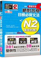 3. 多元學習的增值魔法─文法、單字、內容黃金魔法交叉學習!俗話說:「魔鬼藏在細節裡」,每項文法的例句中我們都精心加入該項文法較常配合的單字、使用的場合、常見的表現,也就是考試常出現的考法;還有,貼近N2程度所需的時事、生活等內容,幫助您完全克服文法考試決勝負的難關!為打下堅實的基礎,建議您搭配《精修重音版 新制對應 絕對合格 日檢必背單字N2》來進一步配合學習喔!