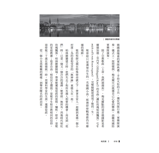 在梅克爾之外,此書回顧了小羅斯福總統夫人的一生,以及創造二十世紀世界秩序的杜魯門。