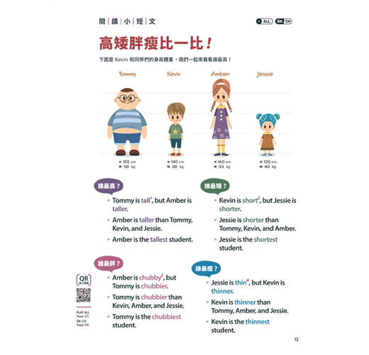 每一主題皆精心規劃各種練習,深化學習到的英語及知識,並潛移默化建立各種素養。