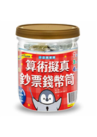 《小企鵝老師‧算術擬真鈔票錢幣筒》共有20〜50枚不等的四種硬幣,
