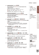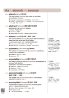 每章節的單字依照A~Z排列,右頁的右上方均會標示左頁的起始單字和右頁的最末單字,查找方便外,也可以掌握自己的學習進度。