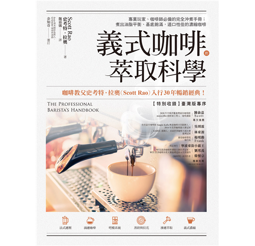 此書原文初版於2008年,等了十四年,史考特.拉奧的第一部著作終於有中文版了。這是我的義式咖啡學習歷程裡,很重要的一本書,或者更精準來說,史考特.拉奧的著作之所以本本精彩,正是因為能兼顧理論與實作。他的書,資訊精準度很高,同時,他有一個寫作本事,就是能把很難的事情講得很清楚,對咖啡愛好者、咖啡教育者、咖啡店經營者,以至所有的咖啡工作者,都是相當大的知識啟發。