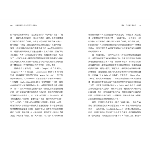 當然,從列寧的角度來說,雖然「帝國主義」一語是在19世紀才於英國廣泛使用,但他認為在16、17世紀英國伊莉莎白世代,「大英帝國」(the British Empire)一語便已廣泛為時人所用,而且此時的大英帝國已然具有武力擴張、物質榨取等特徵。換句話說,如果我們接受列寧所言,「帝國主義」作為一個常見語詞固然是在19世紀才成型,但其現實特徵卻可能早在16、17世紀便已見端倪。列寧的分析誠有其道理,但正如羅伯.楊(Robert Young, 2001: 110)所指出的,「對列寧和其後的馬克思主義者來說,帝國主義描述的是資本主義歷史的一個階段,而非跨歷史向度的政治與軍事支配作為。」因此,從本書涵蓋的時間與空間軸線來說,我們著眼的是「帝國主義」一詞被廣泛使用之前的歐洲政治思想發展;這也就是說,探討「帝國」從武力征服到自由貿易的變化,仍為本書多數作者所共同關注者。不過,正因為帝國主義與帝國之間有著千絲萬縷的複雜關係,透過考察帝國,我們其實也為更進一步認識、分析帝國主義的發展,作了鋪墊。