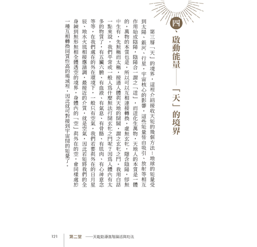 本書將天地人之能量在身心靈的配合運用上提供了一些另類思考的訓練元素,
